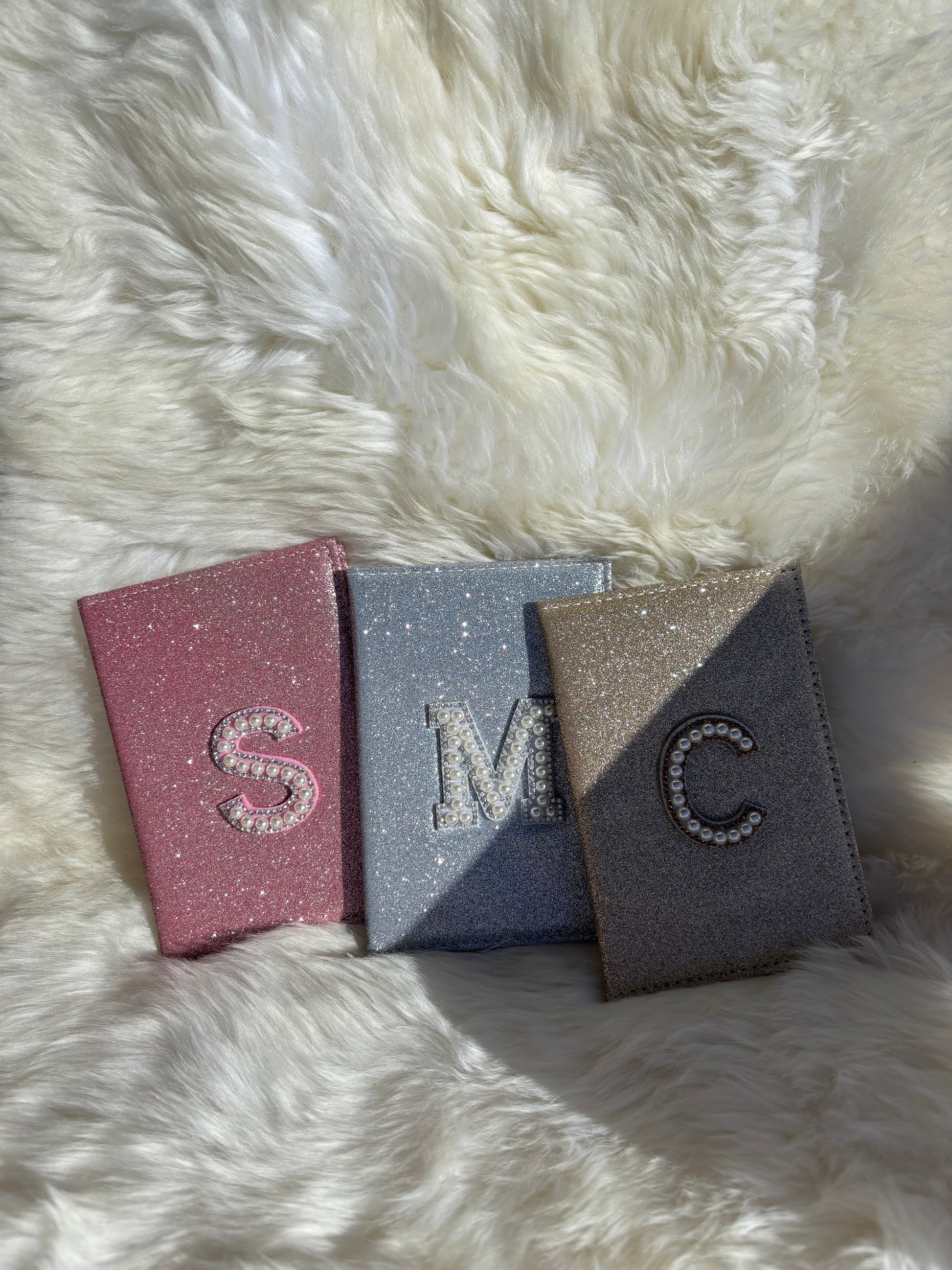 Turn heads at the airport with the Eiranel passport holder. A glittery statement customized with your very own pearly diamond initial.