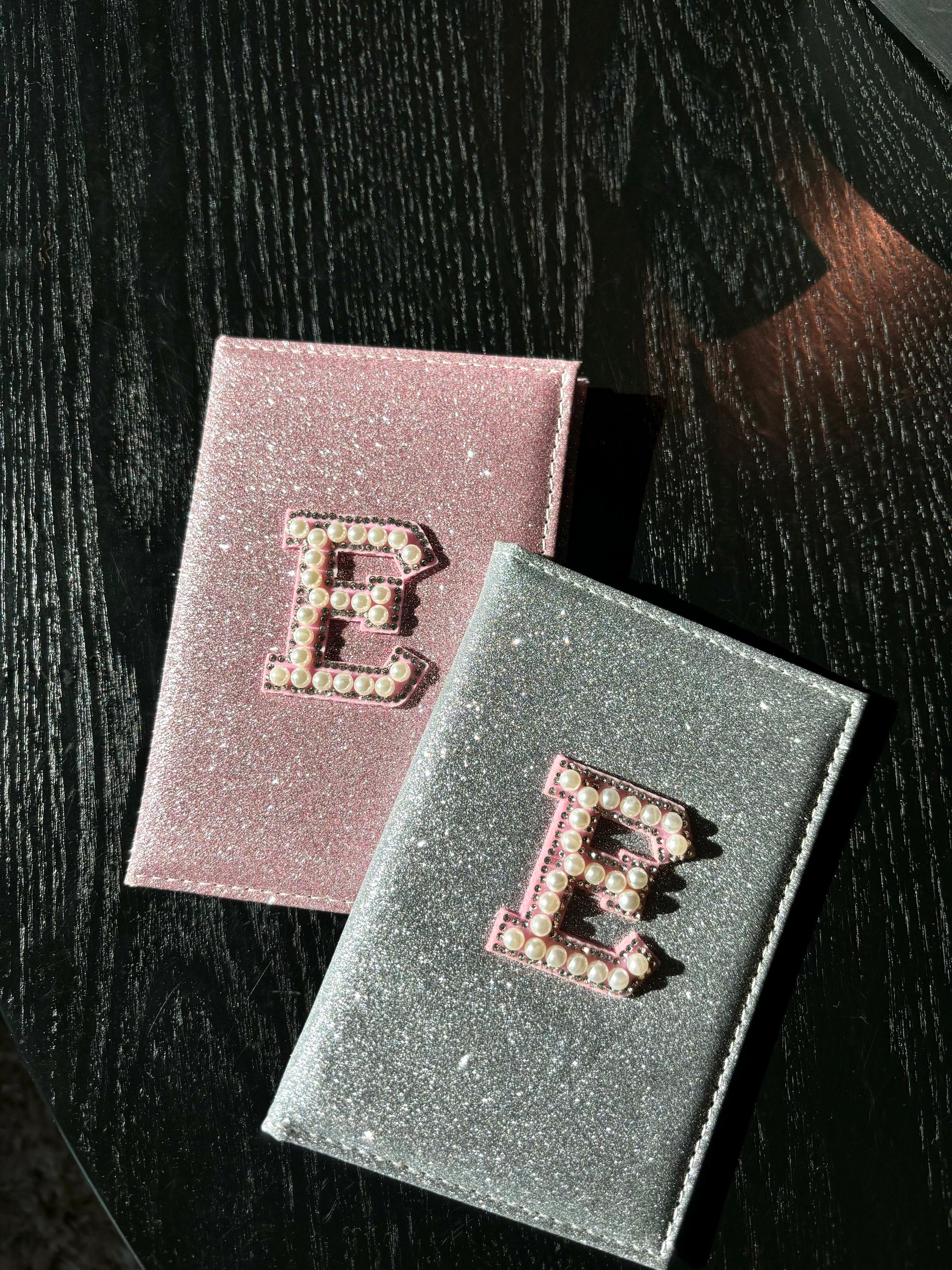 Turn heads at the airport with this shiny, glittery passport cover customized with your very own pearly diamond initial letter.